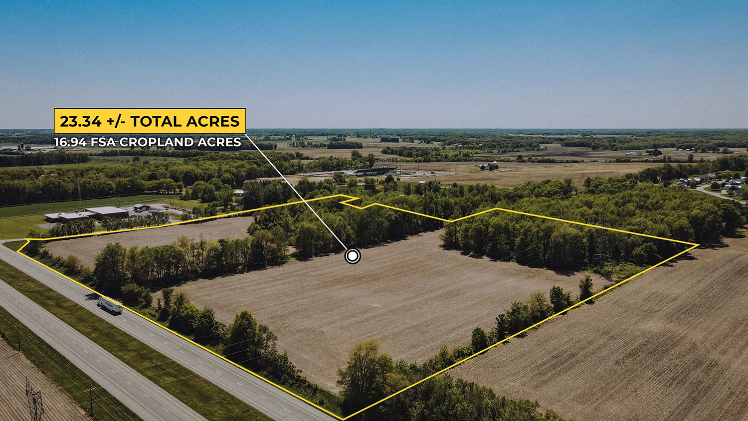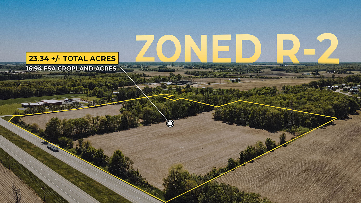 Tract 3: 23.34 +/- Acres total with 16.94 FSA Cropland Acres Zoned R-2. The Weighted Average Productivity Index is 125.7 with mostly Riddles Oshtemo fine sandy loams.