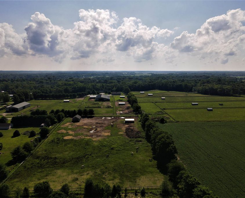 - Ample pasture: 12 paddocks with water and animal shelters