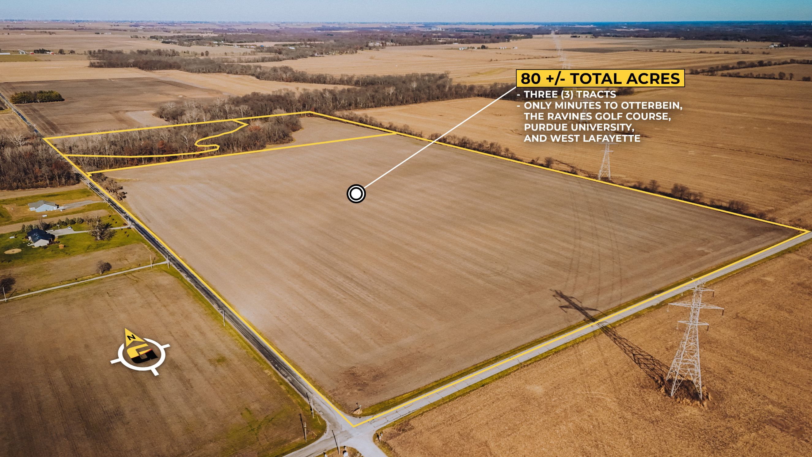 Online Auction, February 4, 2025 for potential homesites, wooded acreage, creek frontage, and productive tillable farmland. Minutes to Purdue, Otterbein, Attica, Williamsport.