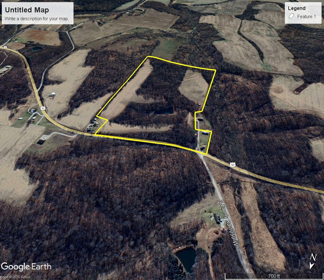 Great investment property in Jackson County 43+/- Acres with tillable acreage, cabin, large pole barn and well stocked pond. This property would make a great investment with approx. 20+/- tillable acres. The cabin was built in 1939 and has approx. 1600 sq. ft. of finished area, county water, electric, high speed internet availability, hardwood floors, and a walk out basement. Perfect for a weekend getaway or to be used as a rental. The large pole barn has approx. 2000 sq. ft., a concrete floor and plenty of loft space. This property has plenty of potential areas to build your dream or retirement home with the open crop fields surrounded by young hardwood timber. Those features also make this property an excellent area to start a mini farm or homestead. With the diverse habitat within the property as well as the open crop fields, the property should be flush with an abundance of wildlife and song birds. (The house with one acre along the North West side is not part of the sale)
