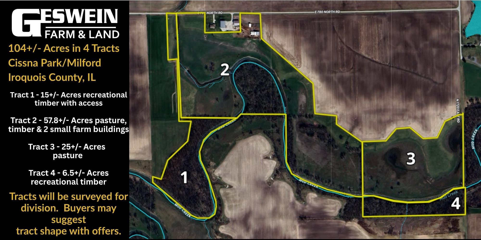 Disclaimer: All information provided by Geswein Farm & Land Realty, LLC or their sales representatives, brokers, managers, and advisors in connection with this property was acquired from sources deemed reliable and is believed to be accurate and reliable, however, we do not warrant its accuracy or completeness and it is subject to change without notice.