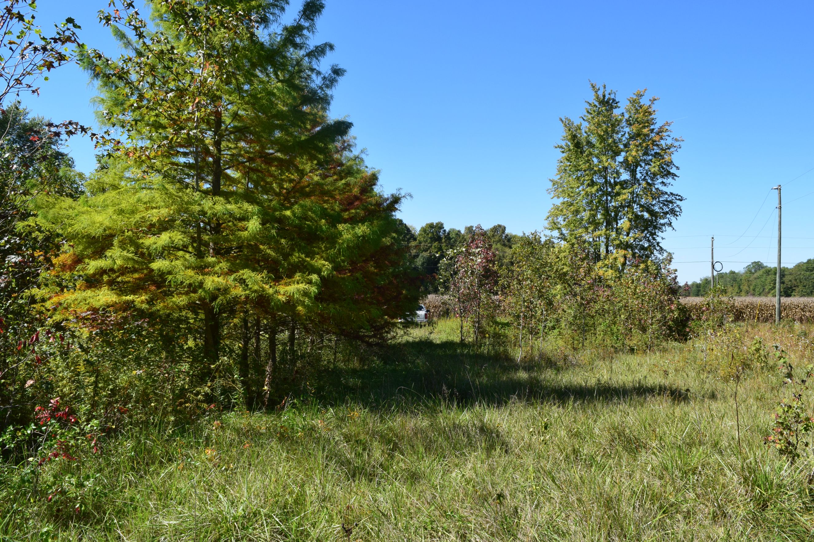 Buildable tract with established drive, electricity, and 1,000 ft. of road frontage, offering serene countryside living near State Road 250 and I-65.
