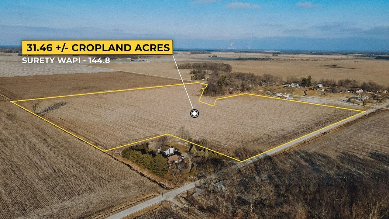Listed for sale is a quality tillable farm at the intersection of 700 North and 700 West outside of Virgie, Indiana. The 31.46 +/- cropland acres have a Surety Weighted Average Productivity Index (WAPI) of 144.8. It is primarily Zadog Maumee loamy sand soils. This farm has excellent paved road frontage on the South and East side for easy access.