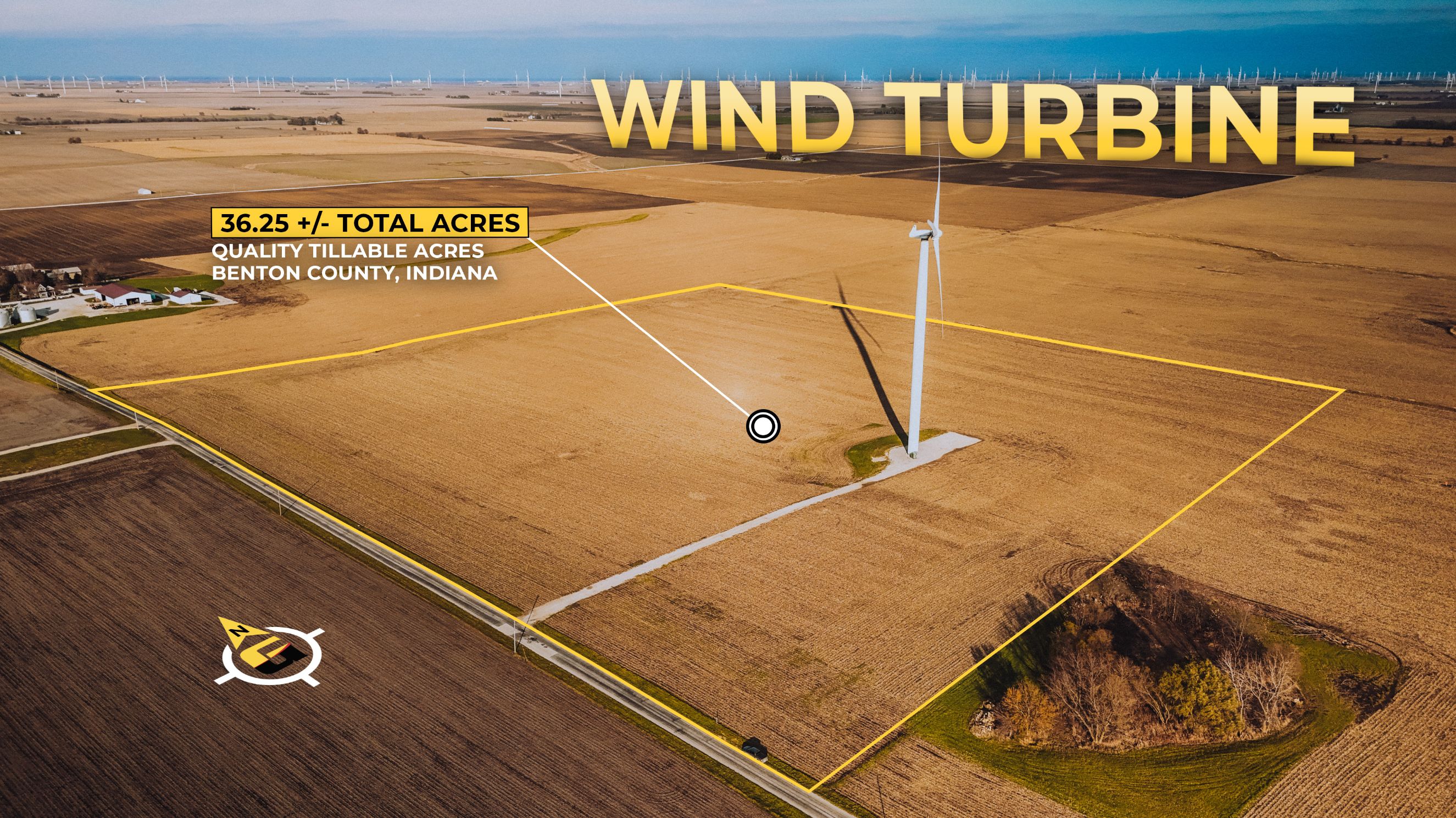 Excellent investment opportunity for ROI, this 36.25+/- acres of productive tillable includes wind turbine income royalties.