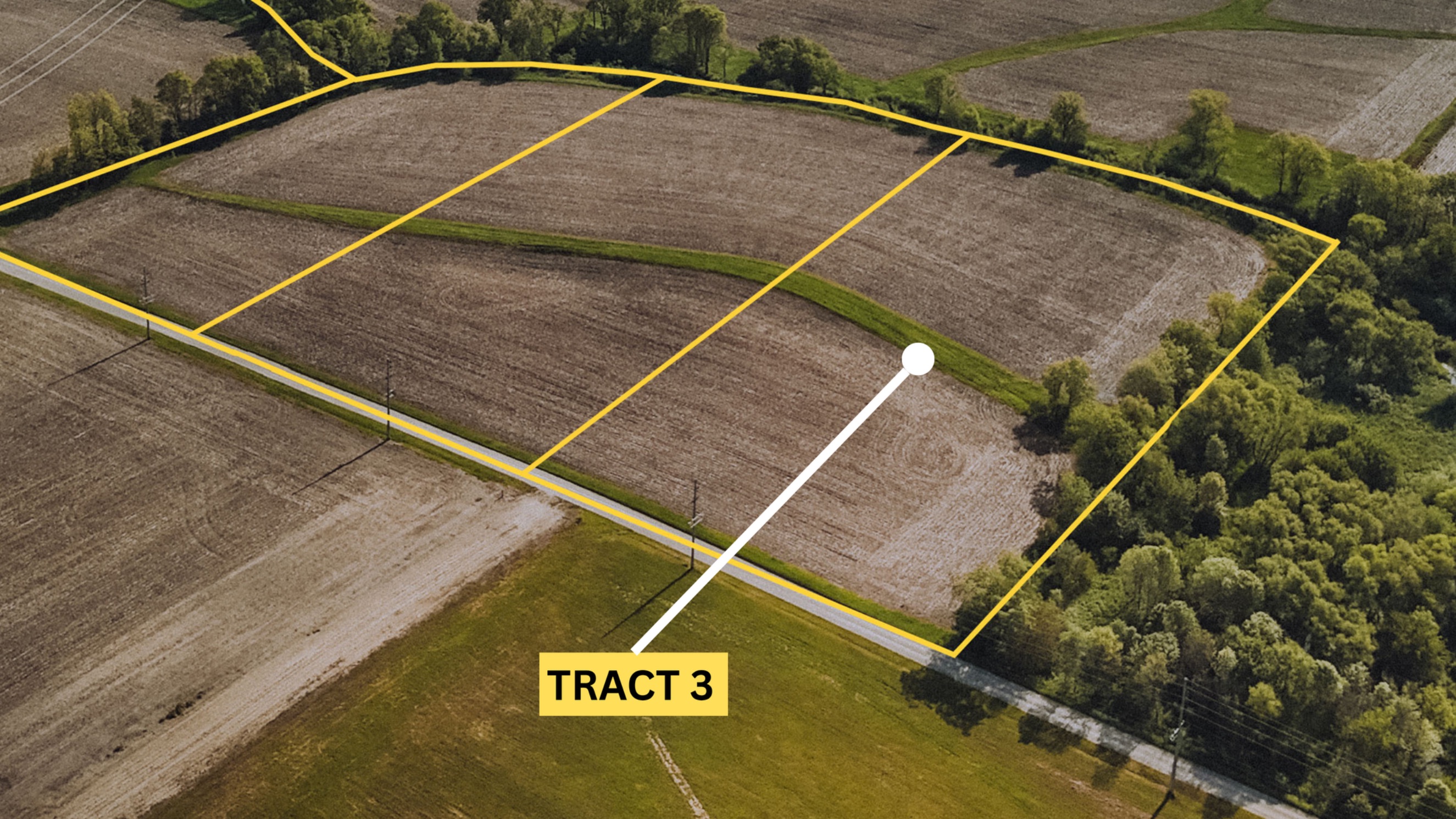 County Road 275 W road frontage bordered by mature tree-line