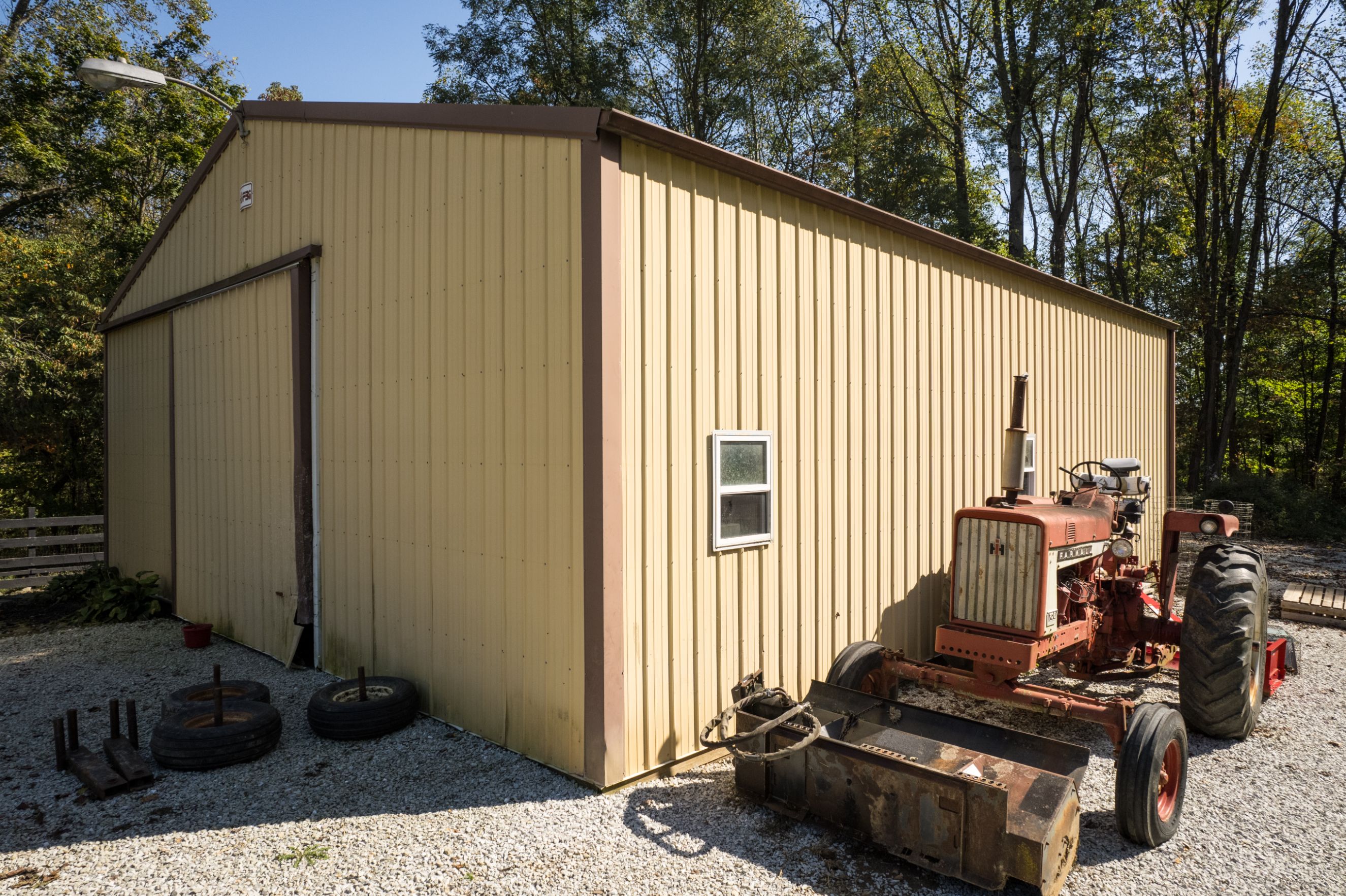 For sale: This 50+/- acre homestead in Fayette County, Indiana offers a perfect blend of rural living, functional outbuildings, and outdoor recreational opportunities. The main residence is a well-maintained 1,560 sq. ft. home with 3 bedrooms and 1.5 bathrooms, providing a cozy and comfortable living space. The property includes a newly constructed 64x48 ft. pole barn featuring heated floors, a full bathroom, 200-amp electrical service, and a 100x10 ft. front porch, ideal for storage, a workshop, or entertaining. An additional 36x40 ft. barn is equipped with animal stalls and an office, making it ideal for livestock or farming operations. The land itself is primarily wooded, featuring marketable timber such as red oak, black oak, and poplar, along with a well-maintained trail system that allows easy exploration of the property. For families, there's a children's tree house for added outdoor fun. The property also offers a quarter-acre fenced-in pasture, perfect for livestock, and an additional 6+/- acres of non-fenced pasture that can be used for hay production, grazing, or food plots. This versatile property provides endless opportunities for comfortable living, agriculture, and recreation. Whether you're seeking a family homestead, a place for outdoor activities, or land with income potential, this Fayette County property is the perfect fit. Don’t miss out on making this beautiful property yours!