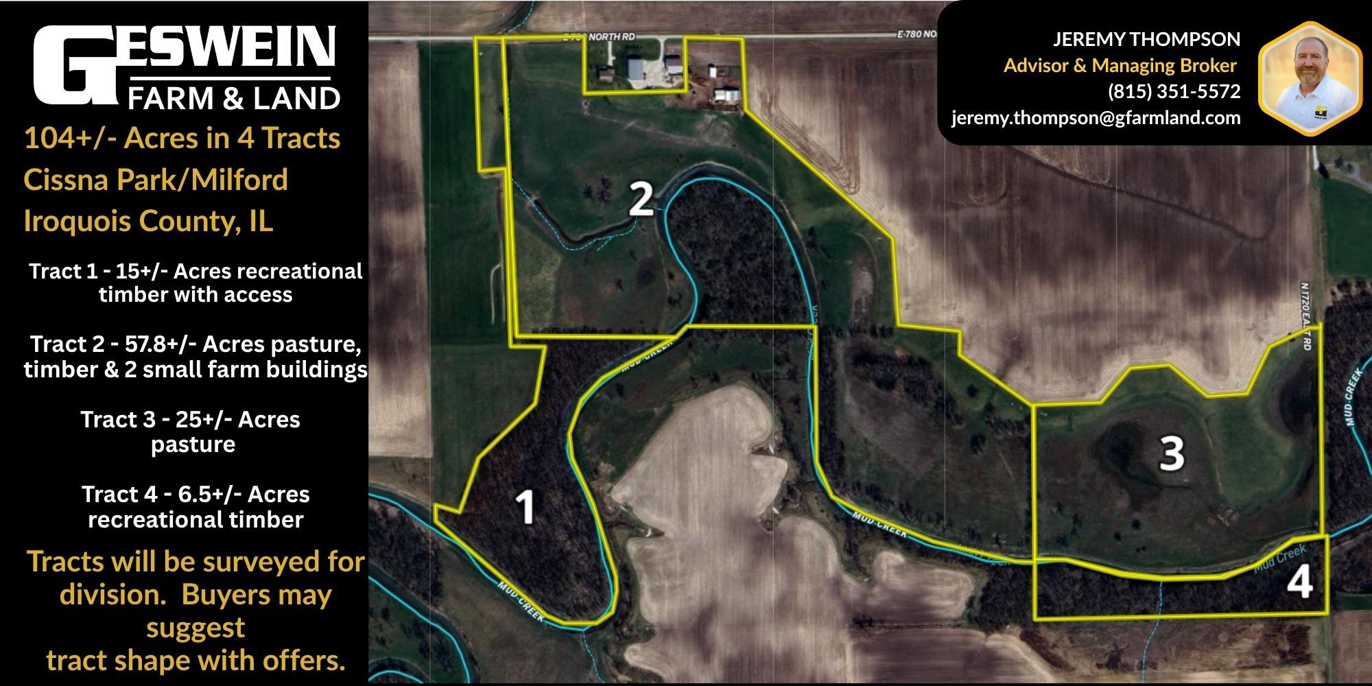 Disclaimer: All information provided by Geswein Farm & Land Realty, LLC or their sales representatives, brokers, managers, and advisors in connection with this property was acquired from sources deemed reliable and is believed to be accurate and reliable, however, we do not warrant its accuracy or completeness and it is subject to change without notice.