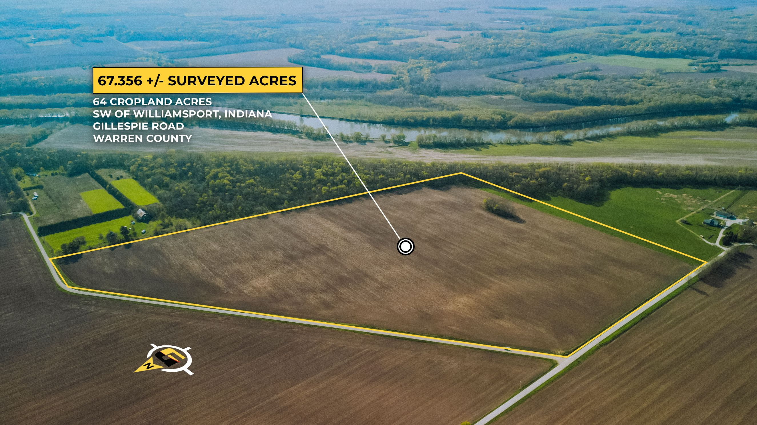 The farm is located on Gillespie Road in Washington Township and contains +/- 64 acres of cropland.