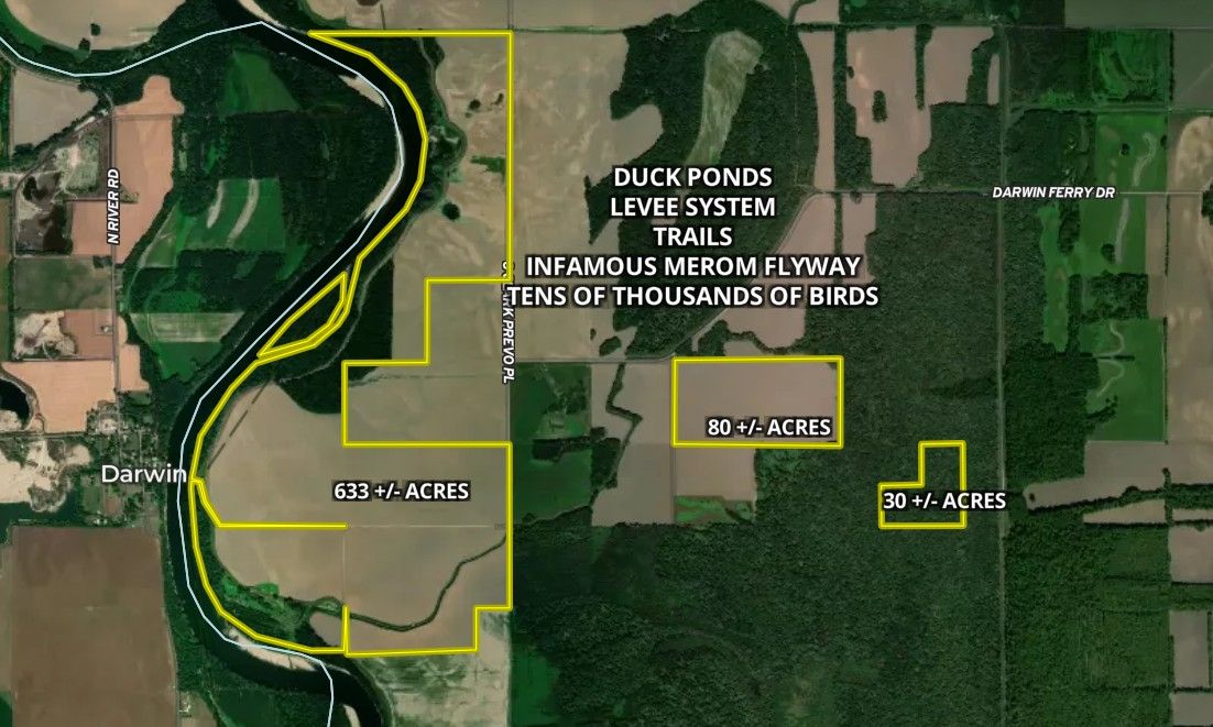 Discover an incredible opportunity to own 740± acres of premier recreational and investment land in Vigo County, Indiana, offering an unmatched combination of wildlife habitat, river frontage, and long-term conservation value. This expansive property is a true outdoorsman’s paradise, featuring diverse terrain, established habitat, and over 2.5 miles of frontage along the scenic Wabash River. A significant portion of the property is enrolled in Classified Forest and the WRP (Wetland Reserve Program), creating ideal conditions for thriving wildlife populations while providing potential tax advantages and long-term habitat preservation. The blend of mature timber, wetlands, natural cover, and river corridor forms a diverse ecosystem that supports abundant wildlife. For the avid hunter, this property delivers exceptional opportunities. The land supports strong populations of whitetail deer, wild turkey, coyotes, and small game, while the wetland habitat and river system make it a prime destination for waterfowl hunting. The extensive river frontage also provides excellent fishing opportunities and year-round outdoor recreation along one of Indiana’s most iconic waterways. Beyond hunting and fishing, the property offers tremendous potential as a private recreational retreat, legacy hunting property, or long-term land investment. Large contiguous tracts of land with over two and a half miles of Wabash River frontage are increasingly rare in western Indiana, making this property a truly unique offering. Whether you're searching for a world-class hunting destination, a secluded outdoor escape, or a strategic investment in high-quality recreational land, this remarkable 740± acre property in Vigo County offers scale, habitat diversity, and natural beauty that are difficult to find in today’s land market.