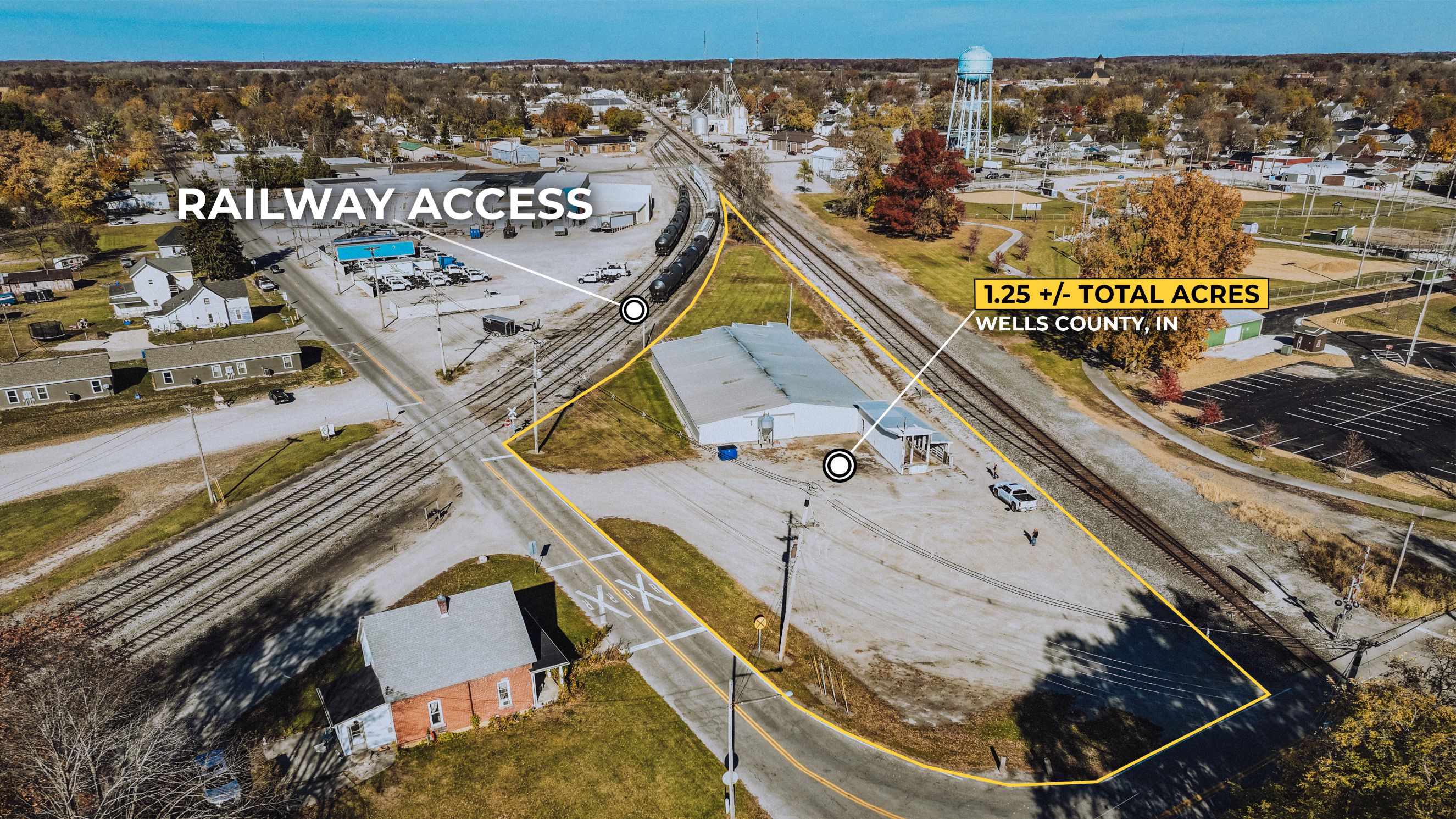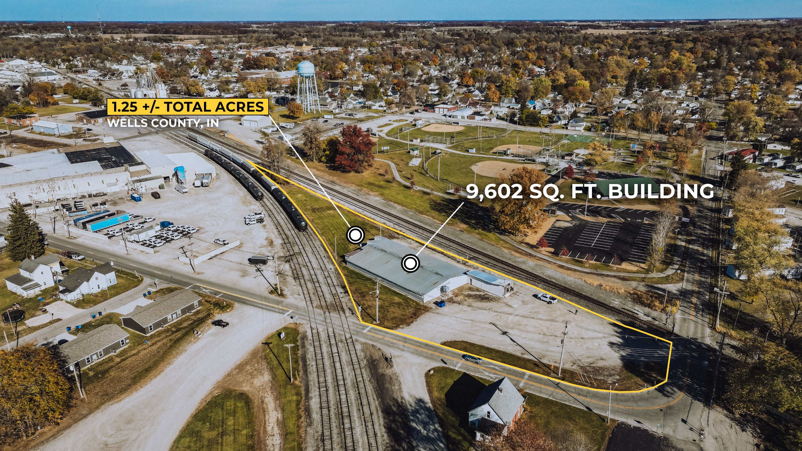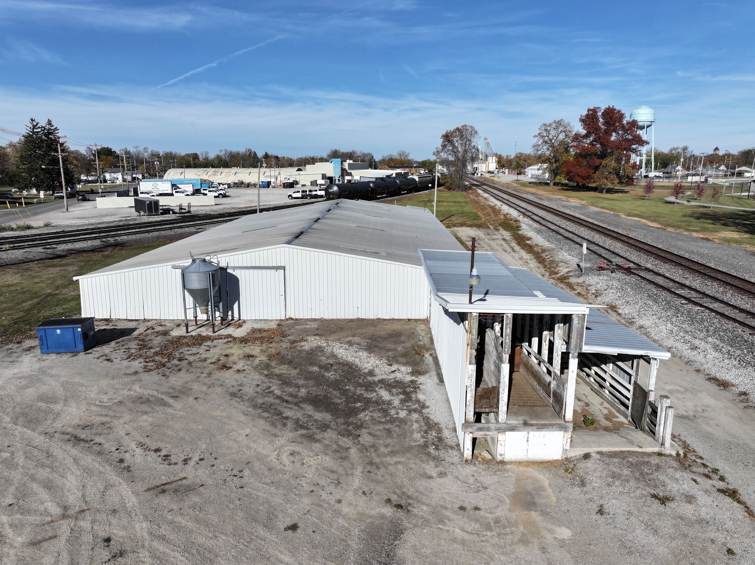 Commercial opportunity in Bluffton! This 1.25 +/- acre property is currently operating as a hog buying station and is zoned for commercial use, offering a range of potential applications. The facility includes a 9,602 sq. ft. building and features valuable rail access, providing strategic advantage for livestock operations, agricultural businesses, or other commercial users requiring efficient transportation and logistics. The property includes space for truck access, loading, and maneuverability. Its layout supports high-volume use and offers potential for continued operation or redevelopment to suit a variety of business needs. Conveniently located within a strong agricultural region, this property provides easy access to local producers and regional markets. Whether expanding an existing operation or seeking a versatile commercial investment, this rail-served facility presents a unique opportunity with infrastructure already in place.