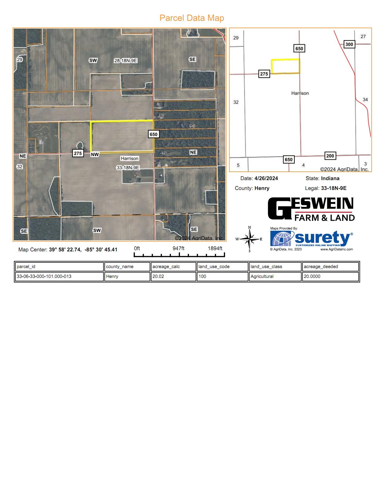 Disclaimer: All information provided by Geswein Farm & Land Realty, LLC or their sales representatives, brokers, managers, and advisors in connection with this property was acquired from sources deemed reliable and is believed to be accurate and reliable, however, we do not warrant its accuracy or completeness and it is subject to change without notice.
